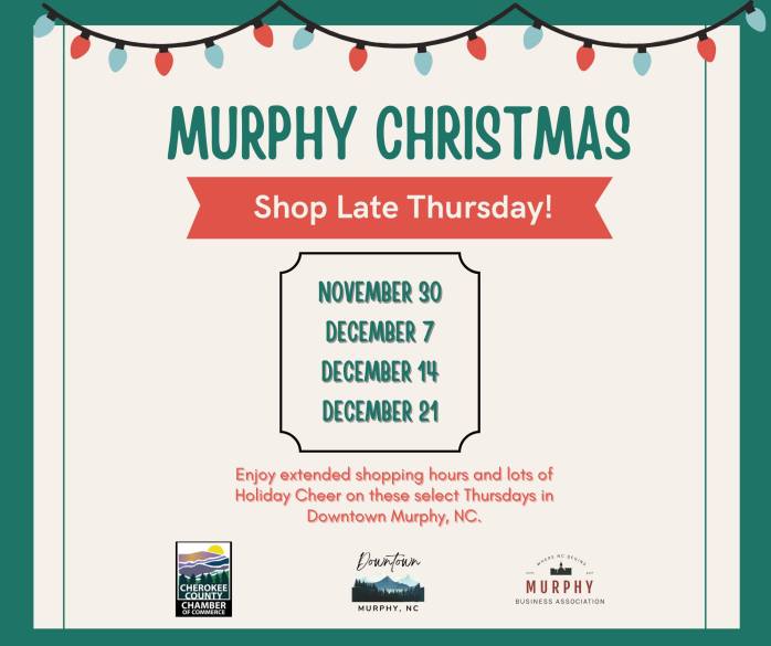 2. Like this post and we’ll announce the winner Wednesday December 20, 2023… just in time for the last Shop Late Thursday of 2023 in Downtown Murphy!