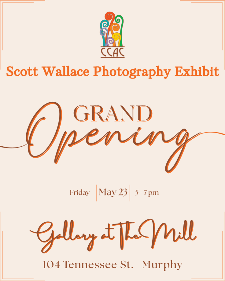 I’m joined by David Brown of the Cherokee Scout and David Vowell of the Cherokee County Arts Council to share a few words about Scott Wallace. We look forward to an evening of storytelling through the lens of this extraordinary artist Friday May 23rd from 5-7pm in The Mill Building