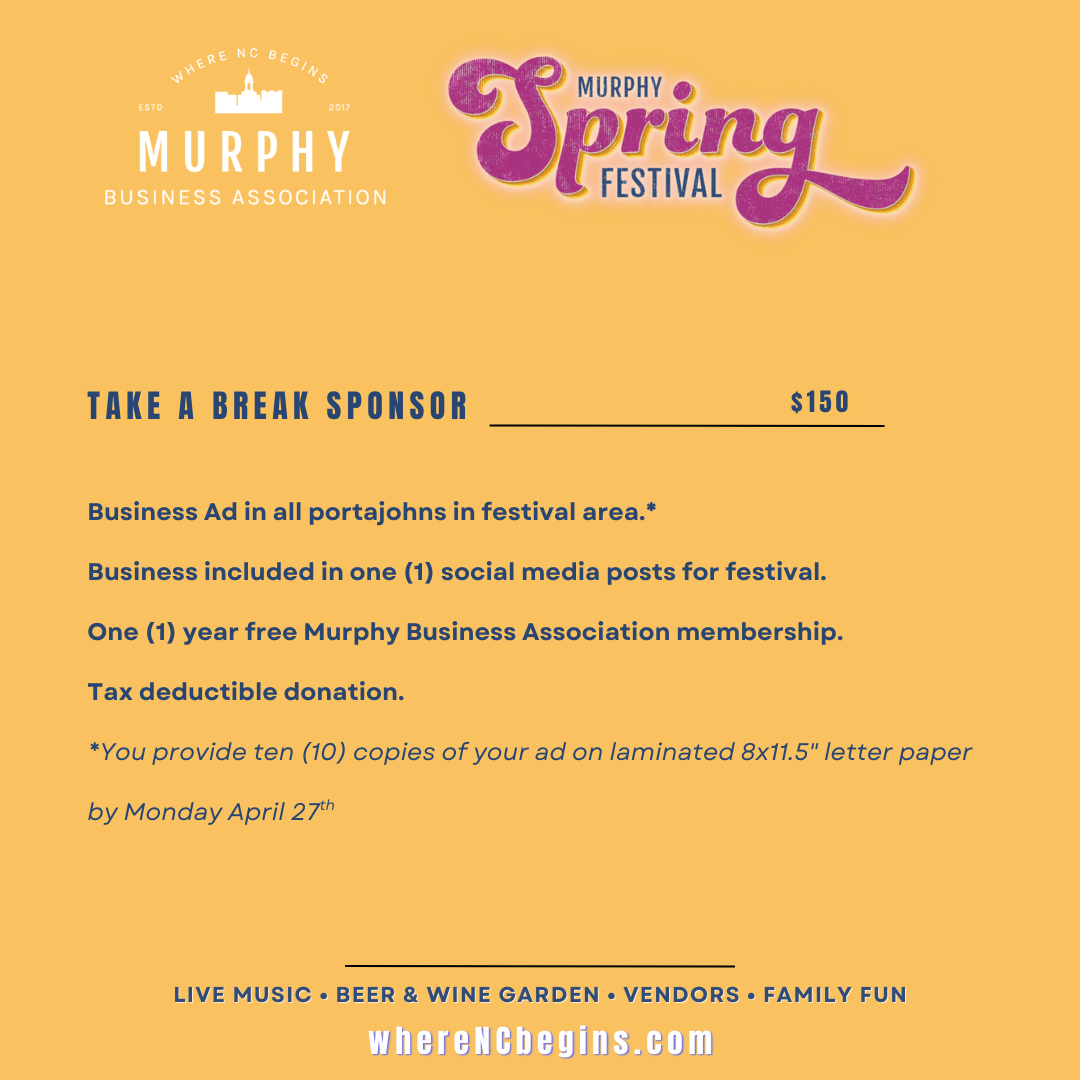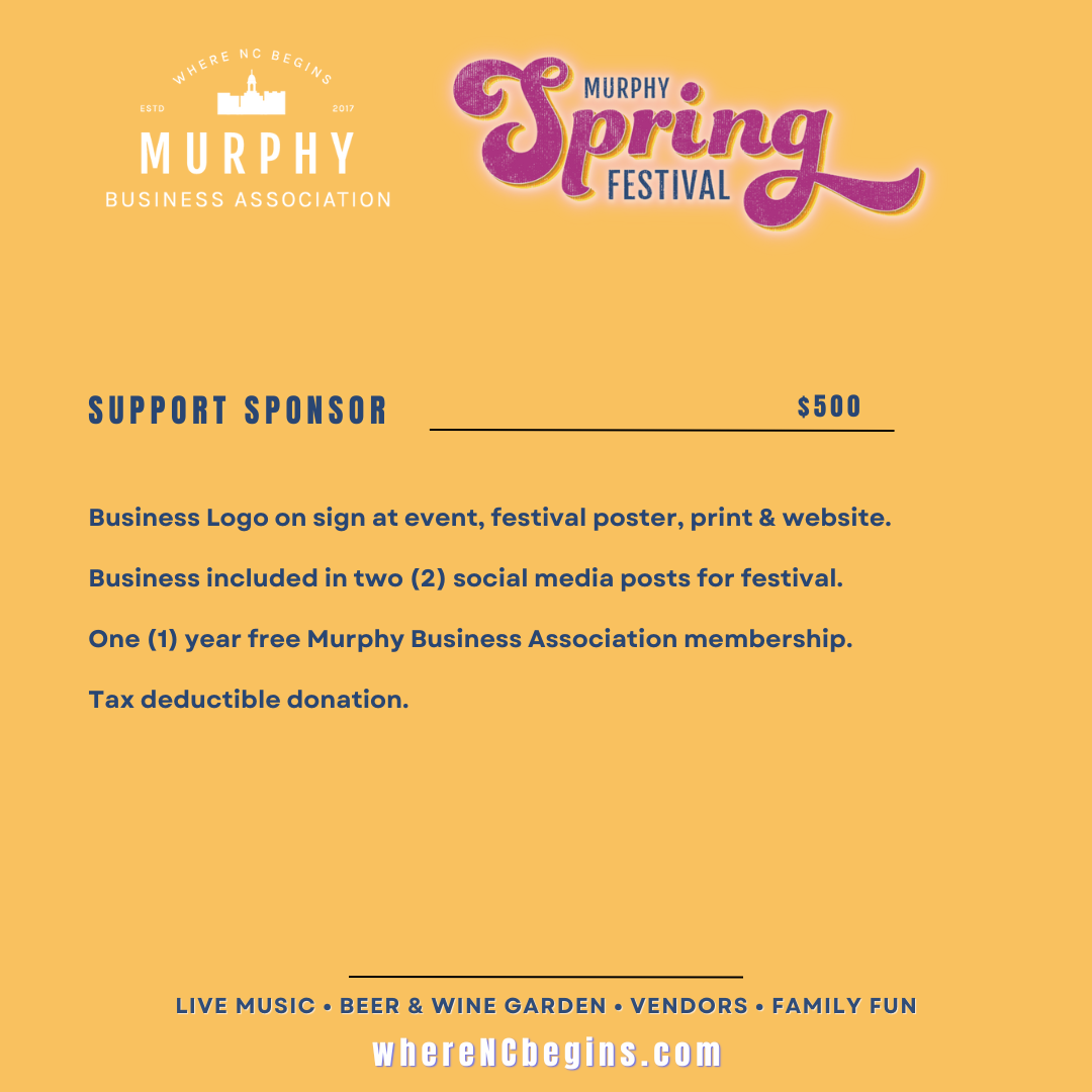 Murphy Spring Festival continues to grow each year and your support helps us showcase local businesses, welcome visitors to downtown Murphy, and keep this community tradition strong.